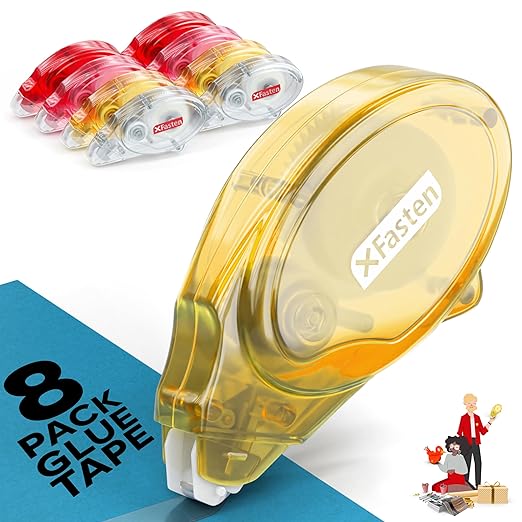 Double Sided Tape for Scrapbooking, 8mm x 30ft 8-Pack Multicolor Adhesive Tape Roller Runner, Jam-Free Craft Tape Ideal Scrapbook Album Kit-XFasten