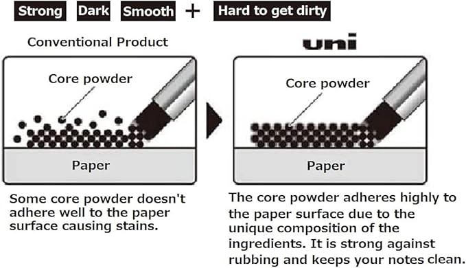 - The new technology on the lead helps the lead powder adhere to the paper. There is not much core lead residue.