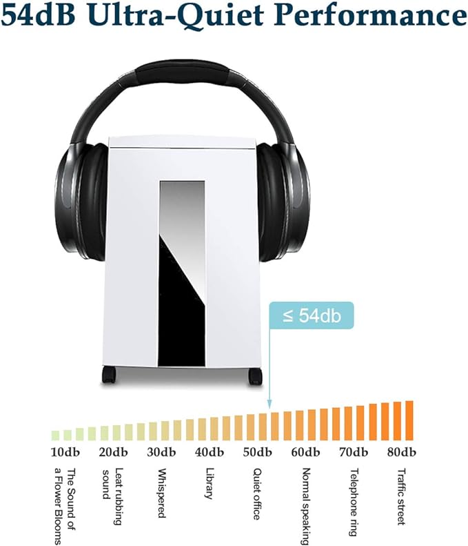 - LOW NOISE LEVEL 54dB ultra quiet heavy duty shredder has 6 gallons pull-out waste bin with large transparent window