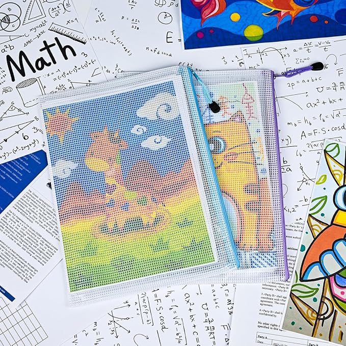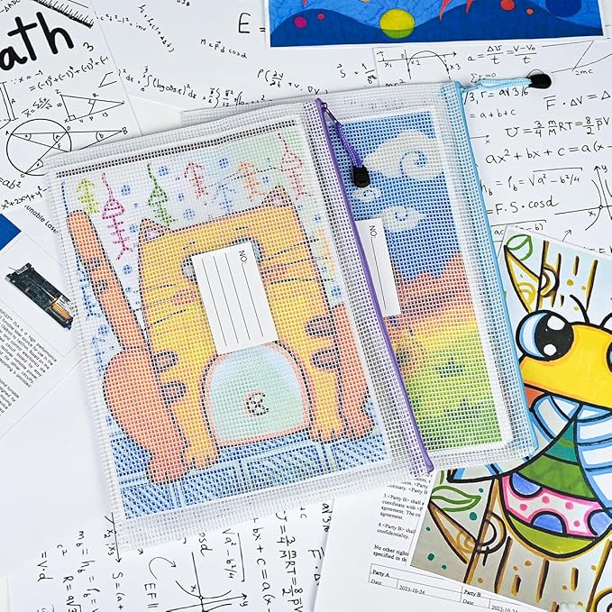 - 12 Pcs Mesh zipper bags with label pocket, A4 size 13.4 x 9.4 inch. Widely used in Office Home Hospital and Travel: Great zipper file bags, board game storage bags, pencils pouches, puzzles bags, cross stitch projects bags or keeping various craft projects organized. These mesh bags could meet your needs in all ways.NOTE: Manufacturer Minimum Age: Over 3 Years Old.