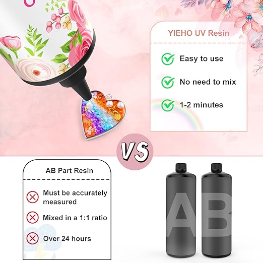 - 【HEALTHY and SAFE】 You can rest assured to use our UV resin with Safety Data Sheet. The ingredients of YIEHO UV RESIN have been strictly checked, which also meets the requirements of REACH regulations. You can buy with confidence. As a handicraft enthusiast who likes to make jewelry, you don't have to worry that using yieho UV resin will affect your health. You can buy with confidence.