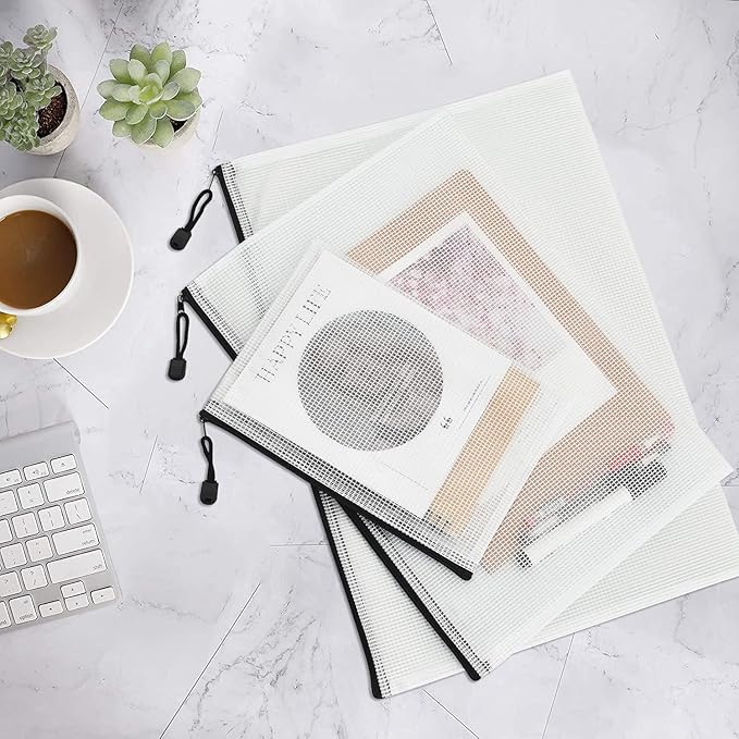 20 PCS B4-15.4×11Inch Plastic Mesh Zip File Bags, Waterproof Tear-Resistant Document File Folders, Zipper Documents Pouch Document Organizer Bags for School Office Home Travel Storage