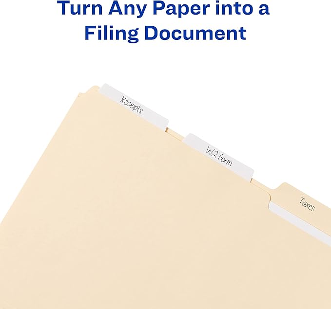 - Organize with style while filing documents, at work or at home, with each pack of 24 white tabs