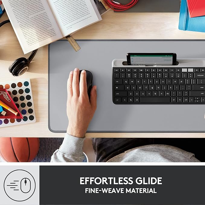 - Mix and match: Pair the wide desk mat with Logitech POP Keys mechanical keyboard and POP Mouse, with swappable emoji shortcuts to spice up your communication and get your true self heard