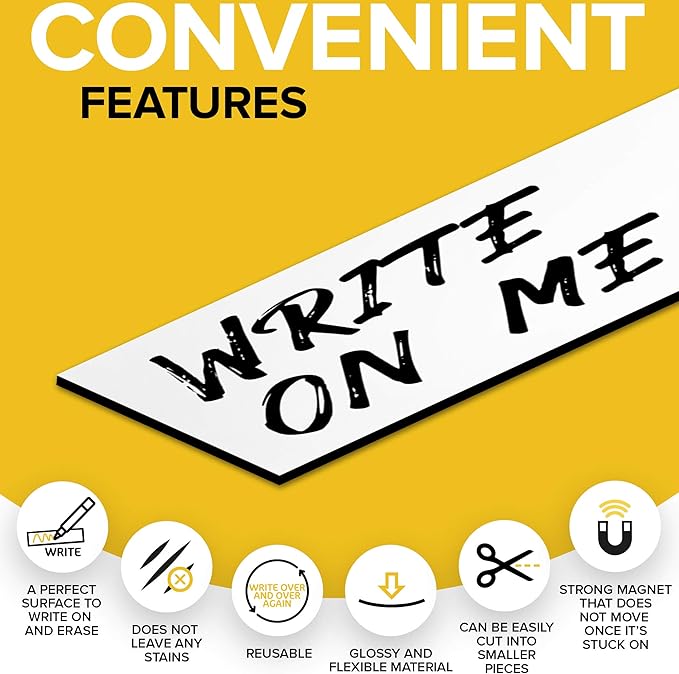 X-bet MAGNET Dry Erase Magnetic Strips - Magnetic Tape Roll - Blank Write On Magnets - Sticky Labels and Stickers - Writable Flexible Magnet Sheet for Whiteboards, Refrigerator and Crafts