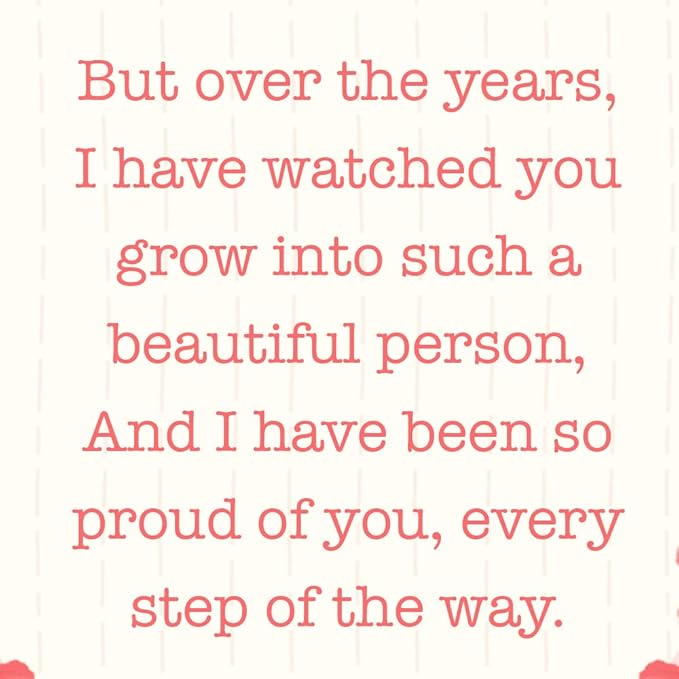 - INSIDE MESSAGE: But over the years, I have watched you grow into such a beautiful person, And I have been so proud of you, every step of the way. Have a wonderful Birthday!