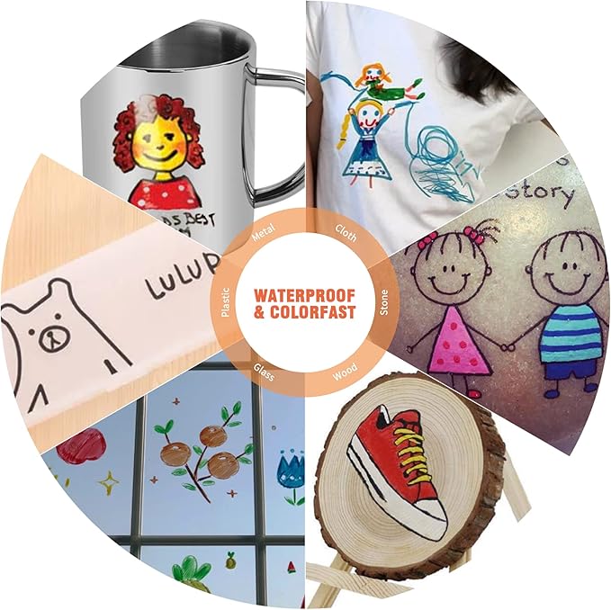 - 🖍️WORKS ON ANYTHING: Used on paper, poster, stone, wood, clothes, plastic, metal, ceramics, glass and other surfaces. Rich marker colors for writing, drawing, DIY, marking, coloring books and doodling and so on.