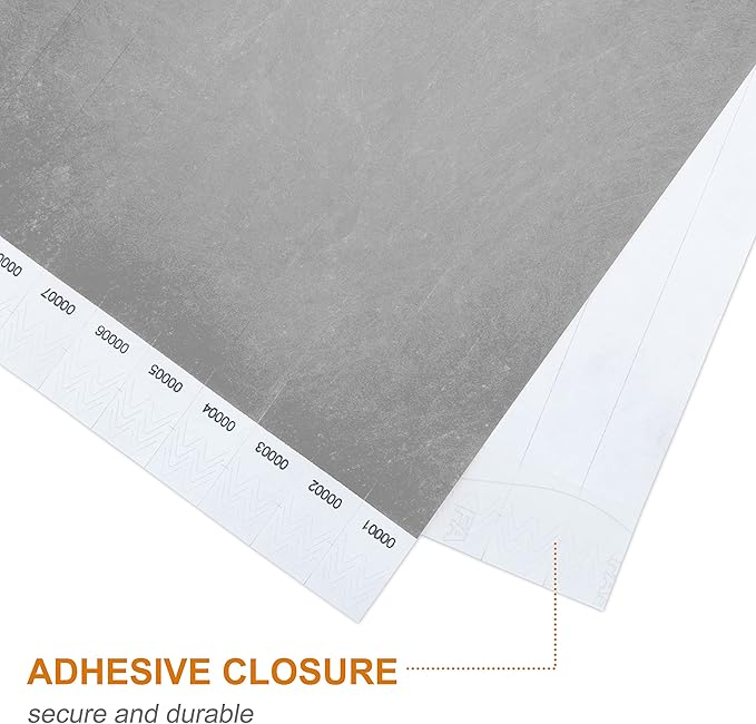 - Wristbands with a strong adhesive and have temperproof slits making them impossible to remove in one piece for transferring to another person.