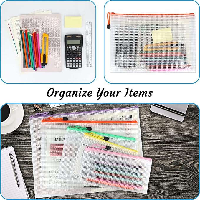 - Translucent Design and Various Colors: Package includes 12 zipper bags in 6 different colors - red, purple, orange, green, yellow, pink. The translucent plastic zipper bag can prevent the privacy of important documents from leaking, but still can identify what the stuff in the bags
