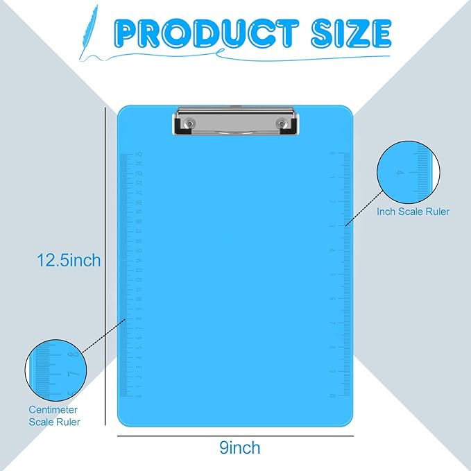 - SIDE RULER MARKINGS: The clipboard provides rulers INCH (0-10 in)scale and CM (0-25 cm)scale on both sides of this clipboard. You don't have to worry about not being able to measure data because you forgot your ruler