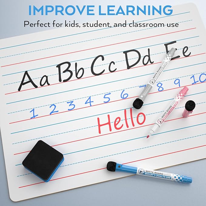 Nicpro Dry Erase Lap Board 12 x 16 inches 2 Pack Ruled Kid Double Sided Blank & Lined Small Lapboard with 8 Pens, 2 Eraser, Learning Mini Whiteboard Portable for Student and Classroom Use