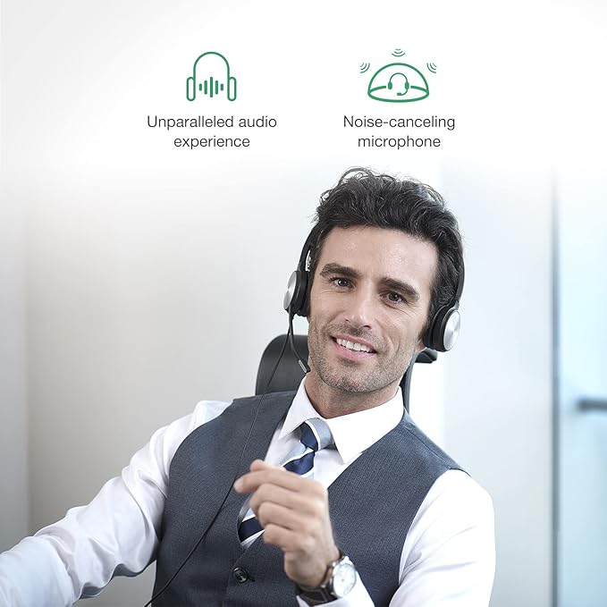 - All Day Comfort | The ultra-lightweight materials and bio-mimetic protein-based leather ear cushions make your head and ears feel relaxed. Its ergonomic design enables the phone headsets comfortable enough for long conference calls and all day use.