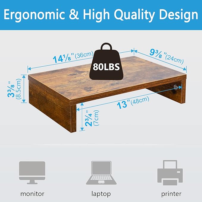 TEAMIX 14.2 inch Monitor Stand Riser, Rustic Brown Wood Monitor Riser with Storage for Desk Small Monitor Stand TV/Screen/PC/Laptop Riser Computer Stand Desktop Shelf (Brown-14.2 inch)