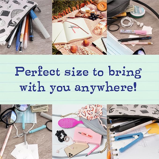 JubileeYarn Portable Travel Safety Scissors, Pen & Push Folding Style - Garden Kitty Pen, Light Blue Pen, Grey Push
