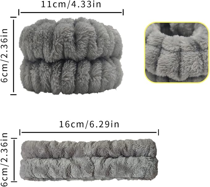 - Practical features: These wristbands are soft and comfortable enough, the fluffy material absorbs water easily, helping to prevent water from running down your arms when washing your face, making them a must-have for skincare lovers.