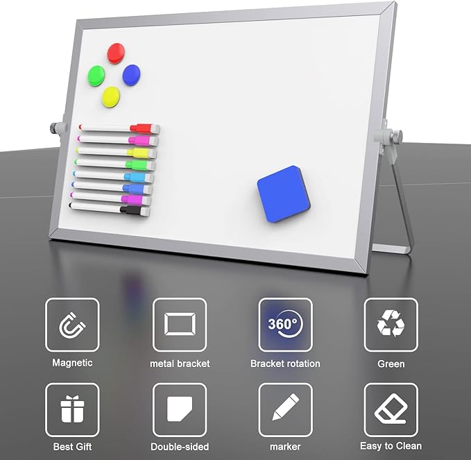 - 【Easy to Clean】:This desktop whiteboard has a smooth surface, easy to write and wipe without leaving marks. Please tear off the double-sided protective film before use. The portable erase board is perfect for home, kitchen, classroom and office
