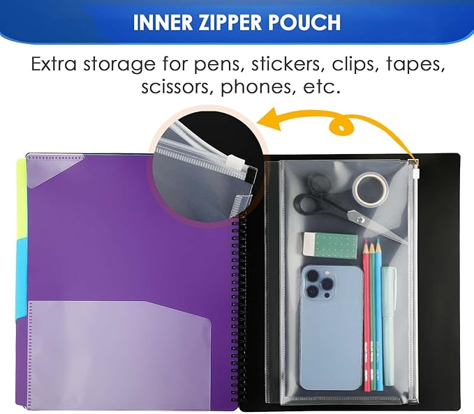 - Extra Storage with Inner Zipper Pouch- Clear poly zip pouch on the inside back cover is designed for larger organization, storing writing utensils, notecards, stickers, etc.