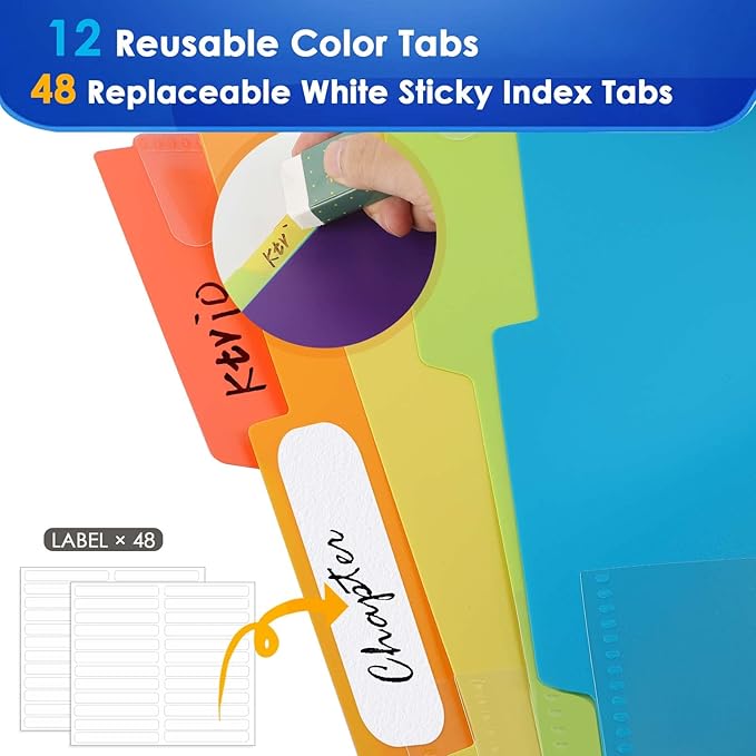 - Write-on and Erase Color Tabs- The thoughtful design of project folder can achieve quickly write on and easily erase with color reusable labels and assorted color tabs is for efficient locating and categorizing. Additional 48 replaceable white index labels are also included.