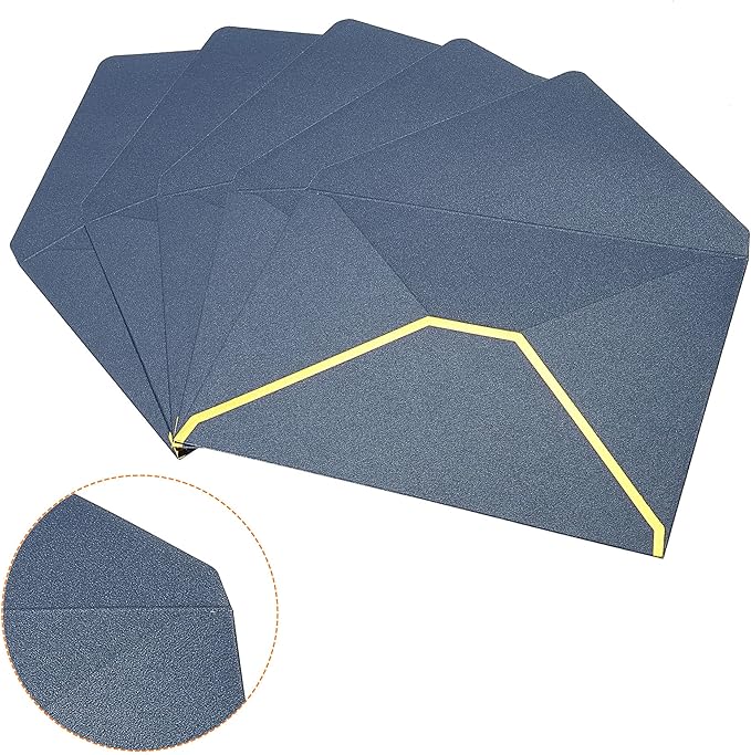 PATIKIL V Flap Envelopes, 10 Pack 7 x 5'' Luxury Style Gold Border Greeting Card Envelope for Invitations Weddings, Blue