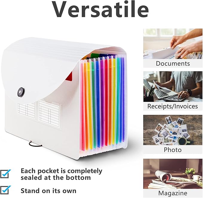 - All-In-One Monthly Organizer: Keep all your important documents in one place with Sooez Accordion File Organizer. 12 pockets design works great for Monthly organizing and protecting all your important paperwork, bills, taxes, receipts, invoices and more. Perfect for letter size.