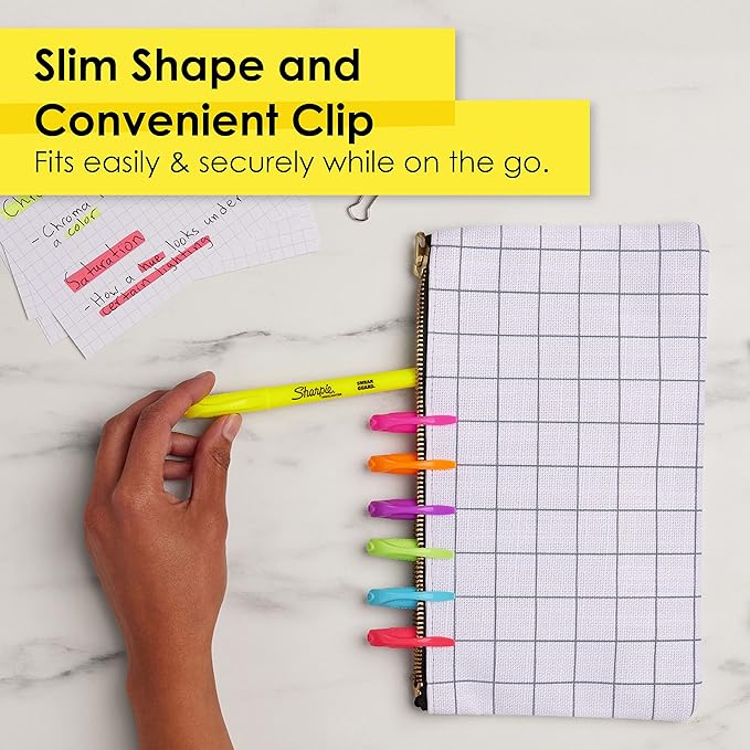 - Super-slim Sharpie Pocket Highlighters fit easily into pockets, backpacks, or clip to your shirt