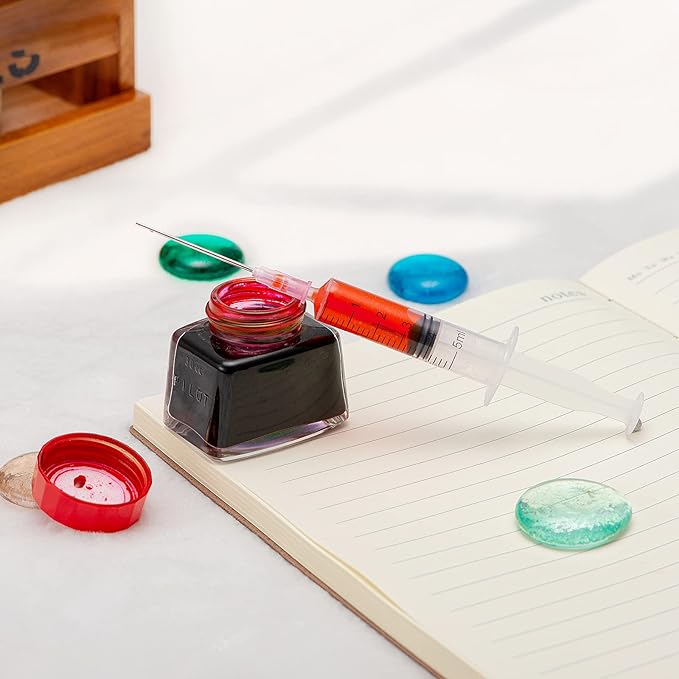 - ✅【Clean and Safety】Each ink filling syringe has a protective cap for the blunt stainless needle tip, will not make your hand dirty when refilling ink.