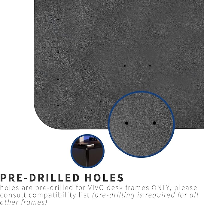 - Compatibility - Fits both manual and electric frames measuring 51" to 70" in length, including VIVO models: DESK-E151EB / DESK-E151EW, DESK-M051MB / DESK-M051MW, DESK-V100EB / DESK-V100EW, DESK-V101EB / DESK-V101EW, DESK-V101M / DESK-V101MW, DESK-V102E / DESK-V102EW, and DESK-V103E / DESK-V103EW. Please Note: The pre-drilled holes fit our VIVO desk frame models. Pre-drilling will be required to fit most other desk frames.