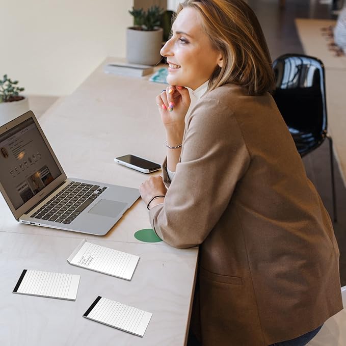 - EXCELLENT MATERIAL: Our writing pads are made of premium 80gsm thick paper for smooth writing without ink bleed. Each notepad has a thick cardboard backing to make your writing easier and more comfortable. Narrow ruled paper provides you with neat and orderly lines to keep your records organized and legible.
