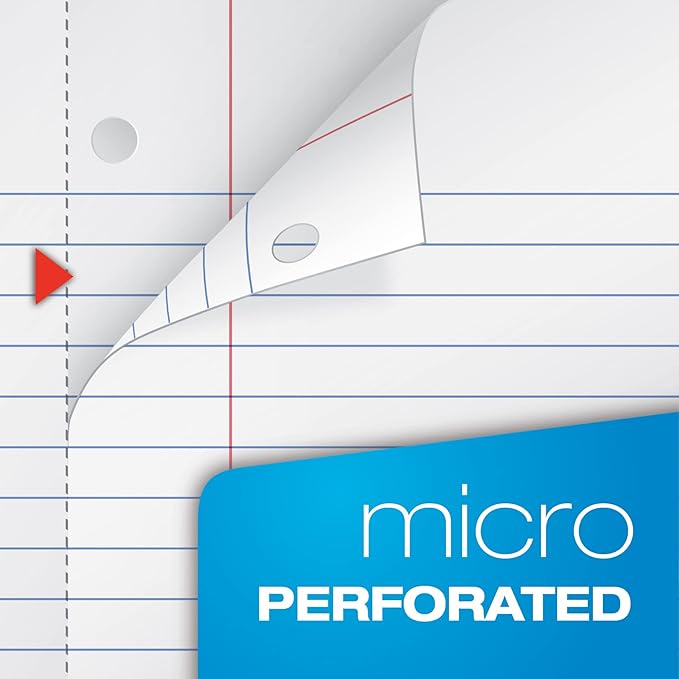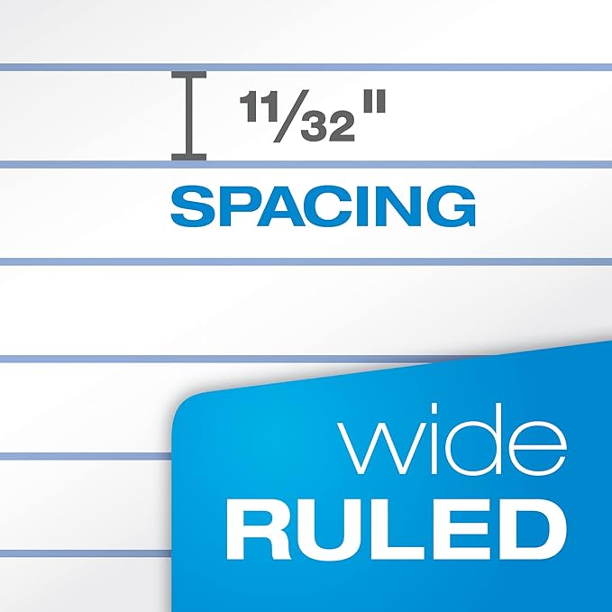 - 8" x 10-1/2" Wide ruled notebooks are perfect for large handwriting; 70 double sided sheets (7-1/2" x 10-1/2" detached) for 140 pages; 3 hole punched to fit your binder