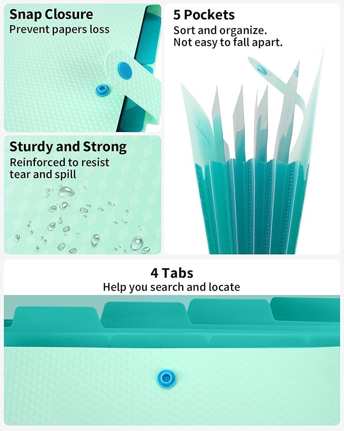 - Easy Organization: This expanding file folder makes sorting and organizing your papers a breeze. Featuring 5 pockets with tabs and colorful labels for quick sorting and retrieval.