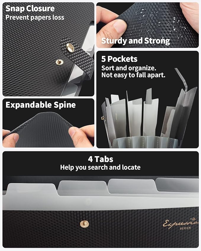 - Easy Organization: This expanding file folder makes sorting and organizing your papers a breeze. Featuring 5 pockets with tabs and colorful labels for quick sorting and retrieval.
