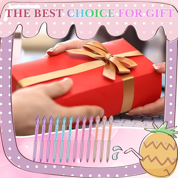 24 Pieces Big Crystal Diamond Pens Bling Ballpoint Pen Black Ink Rhinestones Pen for School Office Supplies Christmas Wedding Birthday Present, 4 Colors(Pineapple Style)