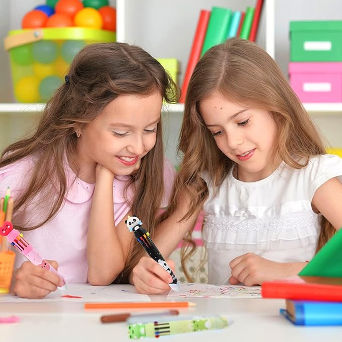 Multicolor Ballpoint Pen 0.7 mm, 10-in-1 Colored Pens Fine Point Retractable Cute Cartoon Animal Ballpoint Pens for Office School Students Kids Christmas Gift, 6 Pack