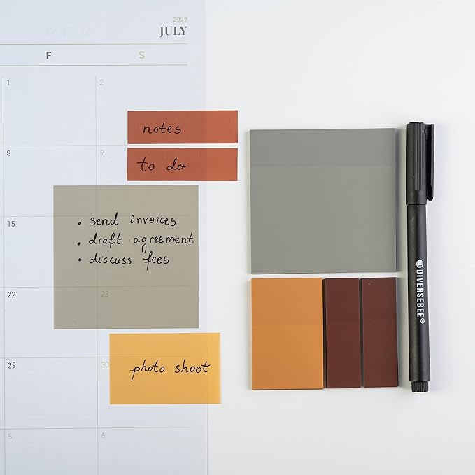 DiverseBee Transparent Sticky Notes (Includes Quick Dry Pen), Cute Clear Sticky Tabs, Translucent Page Flags Book Markers Stickers, Planner Accessories Bible Journaling Study Office Supplies (Dune)