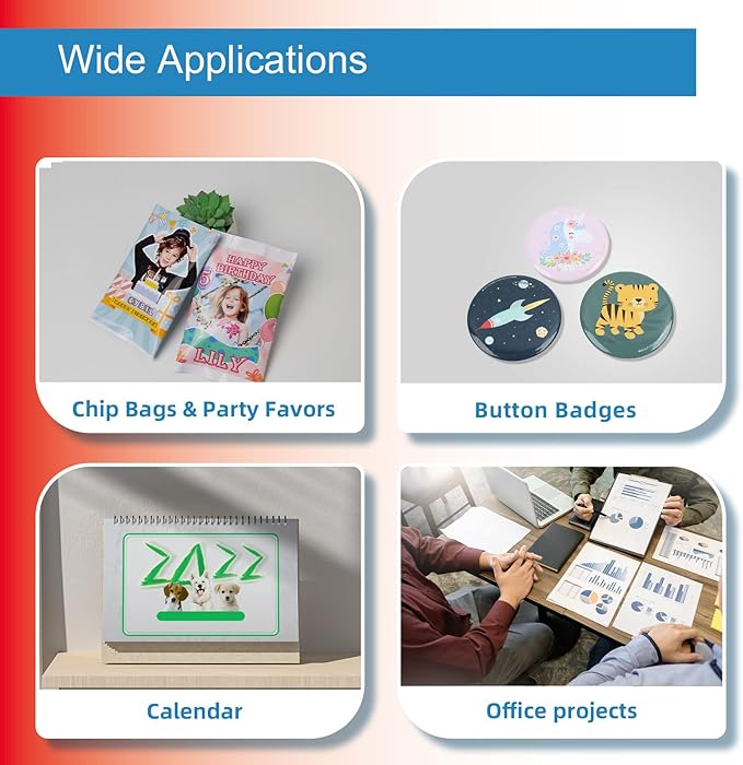 - Wide Use: Perfect for DIY Custom Chip bags, Flyers, Brochure, Newsletters, Presentations, Picture or Images Printing.