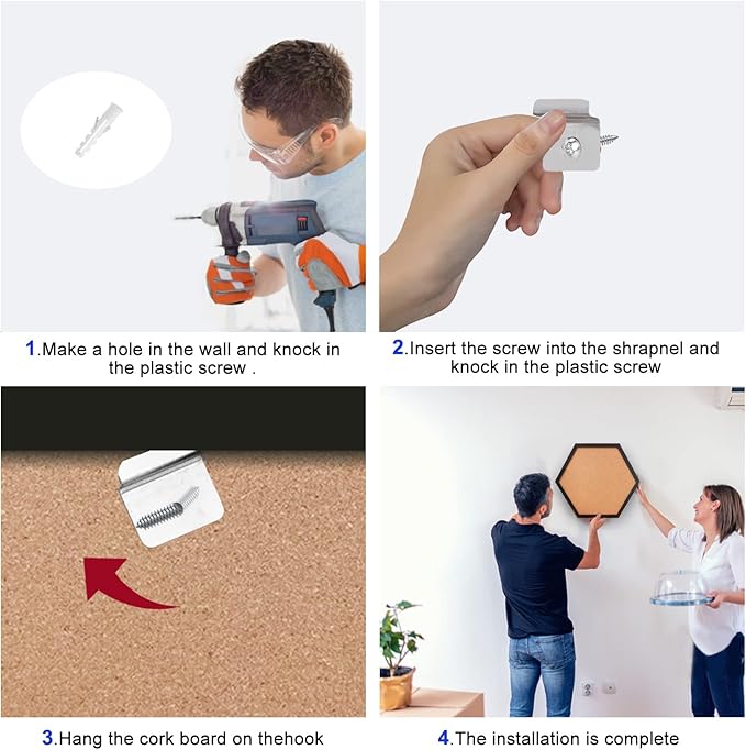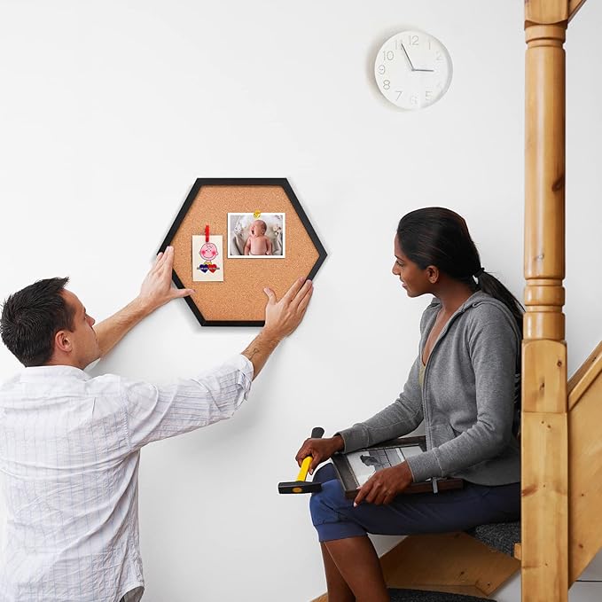 - Hexagon size: 13.9 "x12" Cork Bulletin Board , it contains a variety of accessorie to meet your all wall- hanging needs, pin your notes and messages in any office, home or commercial environment.
