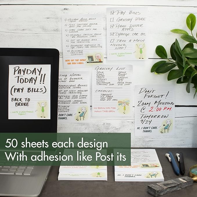 - Made For Everyday Office Life: Versatility has just reached new heights! One of the most useful stationary tools spruced up with pun-based jokes that will make you giggle every time you see them - and the fun sticks around, as the note pads come with adhesion just like classic sticky notes