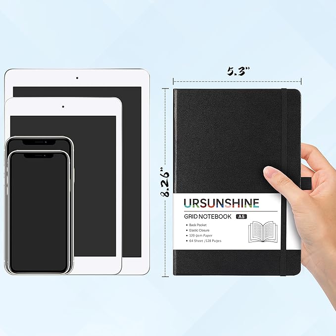 - PREMIUM THICK PAPER - 120 gsm graph paper, our notebook journal is made of high quality acid free paper to help prevent from damages of light and airs to keep notes on the pages clearly. There are 128 pages/64 sheets in this graph grid journal, which provide you with plenty space for planning or scheduling.