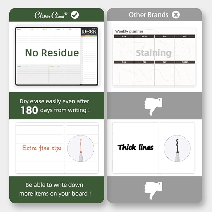 - Erases easily - We use nano premium erase film on our products. Compared to the old PET film, the nano material will make your writings super easy to be wiped off even after you leave the writings on the calendar for a long time.