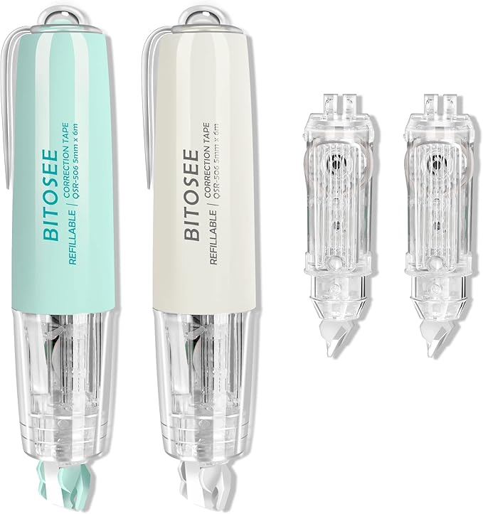 - REFILLABLE - Designed in the shape of a pen, get your mistakes corrected with BITOSEE's correction tape precisely with the right and left hand. With our refillable carrier tape, you can easily refill the applicator without having to buy another whole one.