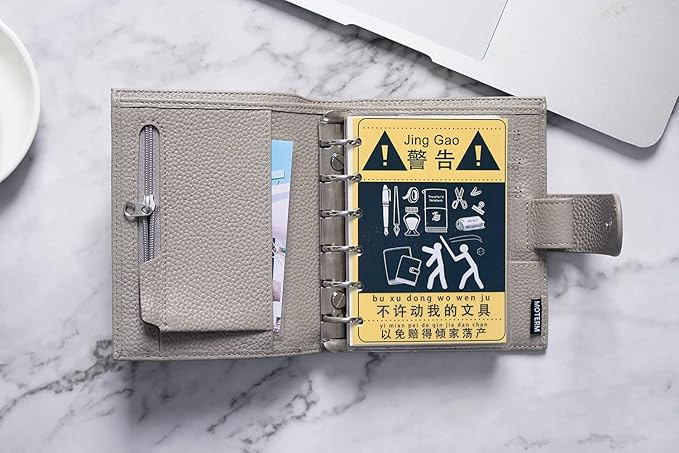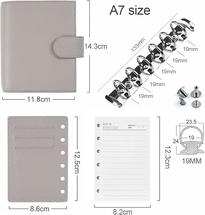 Moterm Pocket Regular Rings Planner - Genuine Leather Binder Organizer (Pebbled-Gray, 19mm Ring)