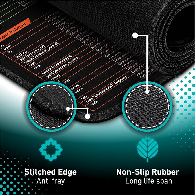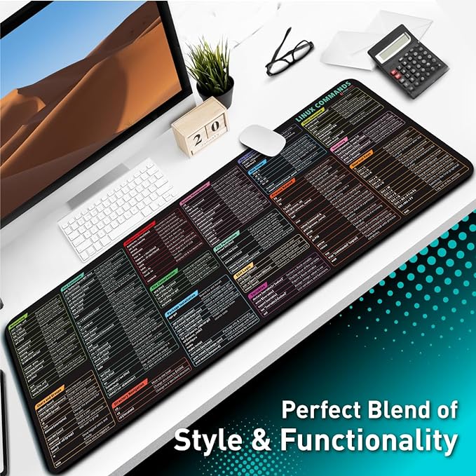 Linux Commands Line Mouse pad - Extended Large Cheat Sheet Mousepad. Shortcuts to Kali/Red Hat/Ubuntu/OpenSUSE/Arch/Debian/Unix Programmer. Non-Slip Gaming Desk mat