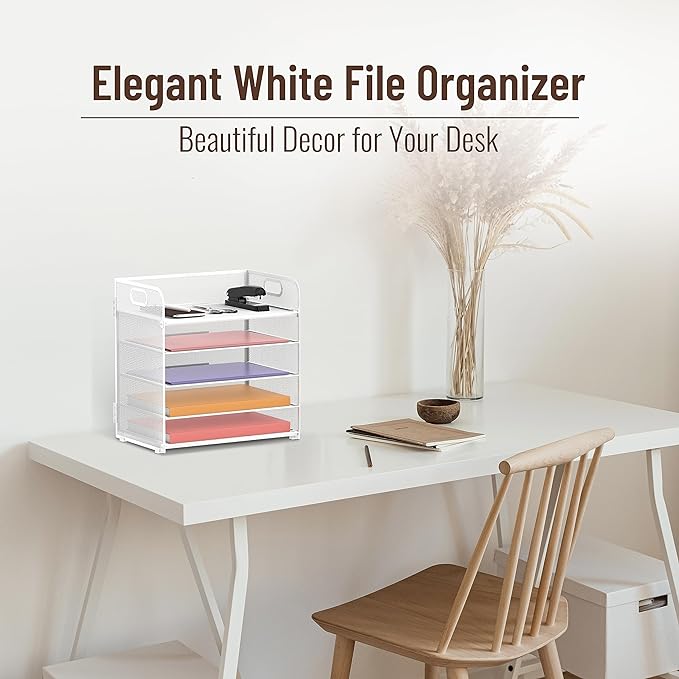 Supeasy 5 Trays Paper Organizer Letter Tray with Handle-Mesh Desk File Organizer, Paper Sorter Desk Organizer for Office, Home or School