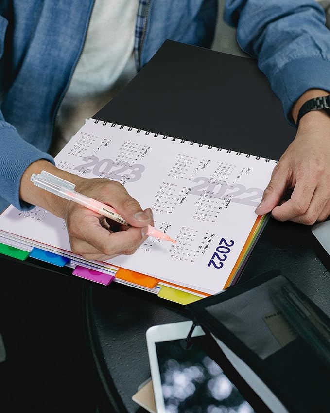 - 【All in One Subject Notebook】Included : 5 movable dividers, 10 inch ruler, writing lable tabs, velcro pocket, 2022-2023 calendar by Mowee, the most multifunctional 8.5''x11'' subject notebook for student journaling writing or office working. The best school & office supplies