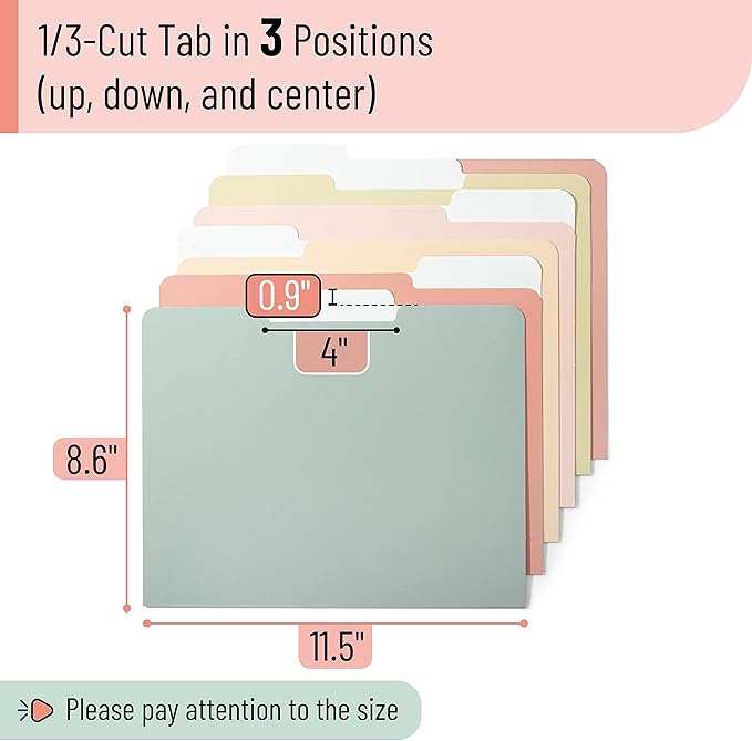 - Keep organized and effortlessly identify your documents with a 1/3-cut tab system in three distinct positions. Simply add custom labels to locate anything you need quickly!