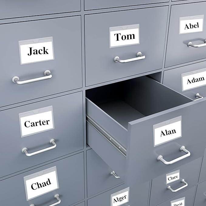 - 【Easy to use】Place your cards, labels, nameplates or photos in the clear adhesive pocket and stick them wherever you need them for easy tagging or organizing. Adhesive label pockets against fingerprints, water, dust or dirt.
