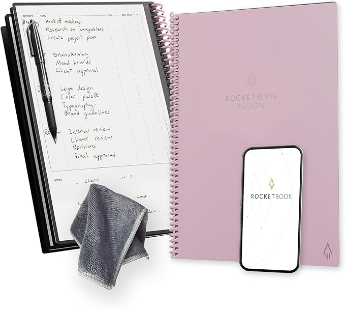 Rocketbook Fusion Reusable Undated Productivity Planner, Letter Size 8.5x11, Pink - Goals, Monthly and Weekly Calendar, Daily To-do List, Lined and Dotted Notes Pages