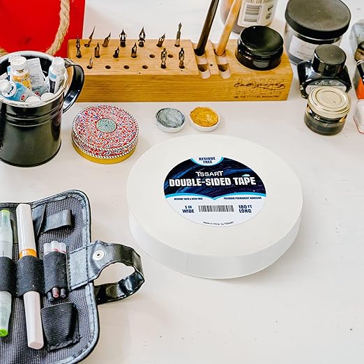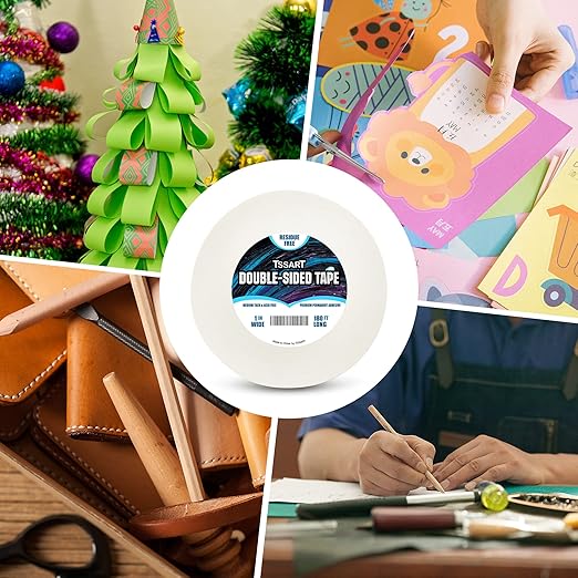 Ultra-Thin Permanent Double-Sided Tape - Double Sided Adhesive Sticky Tape for Arts, Crafts, Photography, Scrapbooking, Tear-by-Hand - Acid Free 1 Inch Wide 180FT Long