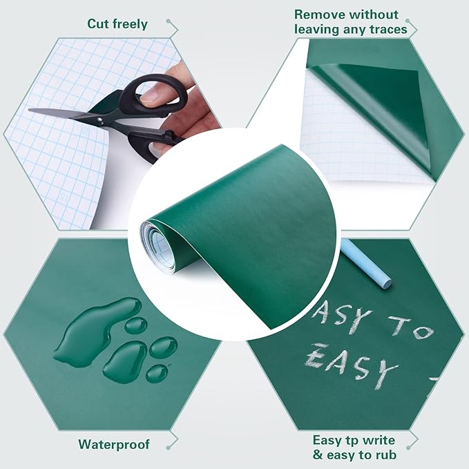 Chalkboard Wallpaper Stick and Peel: Green Contact Paper Classroom Chalkboard Stickers Chalk Board Paint Self Adhesive Wall Paper with 8 Colorful Chalks (35.4 X 78.7 Inches)