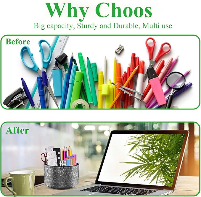 - ✎360° Revolving Design: You can freely rotate the pen holder steadily left and right,unique spinning base design allows easy access to items from any directions.The non-slip pads on the bottom keep it stay in place when rotating.